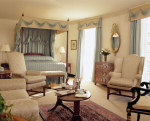 Combining modern amenities with sophisticated Regency decor, Williamsburg is sympathetic to its historic location while retaining a stylish presentation and providing home comforts. Queen Elizabeth II and Prince Philip visited in 1957, and again in 2007, to honor the anniversary of the settlement at Jamestown. The stunning second-floor suite which accommodated them has been called The Queen’s Room ever since. There are two other suites – The Churchill Suite and the Rockerfeller Suite, plus a range of guestrooms – Inn Superior, Inn Luxury and Inn Deluxe.