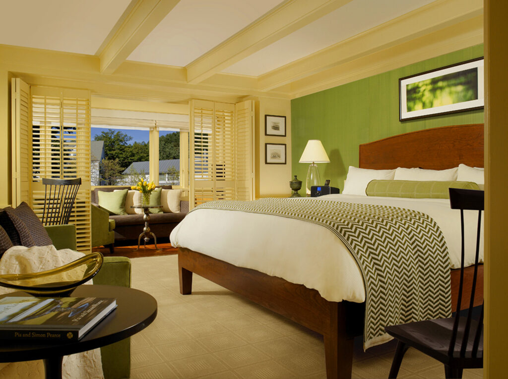The Woodstock Inn & Resort offers 142 country-chic guestrooms and suites. Expect wood-beam bed frames with exquisite linens and warm blankets, marble bathrooms, and modern conveniences such as iPod docking stations and flat-screen televisions.