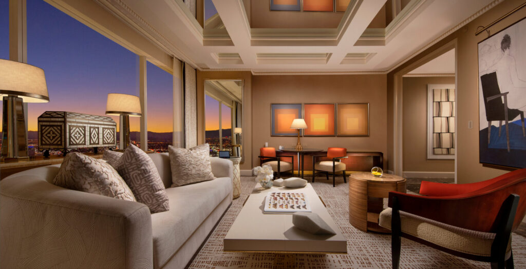 Wynn Fairway Villa One & Two-bedroom configurations, 2411 and 3224 sq ft respectively, opening on to a secluded patio or balcony, ideal for outdoor dining.  Guests of the Fairway Villas benefit from a host of VIP benefits such as transportation from/to the airport, butler service, daily access to The Spa and Fitness Centre, priority access to shows and dining reservations and much more.