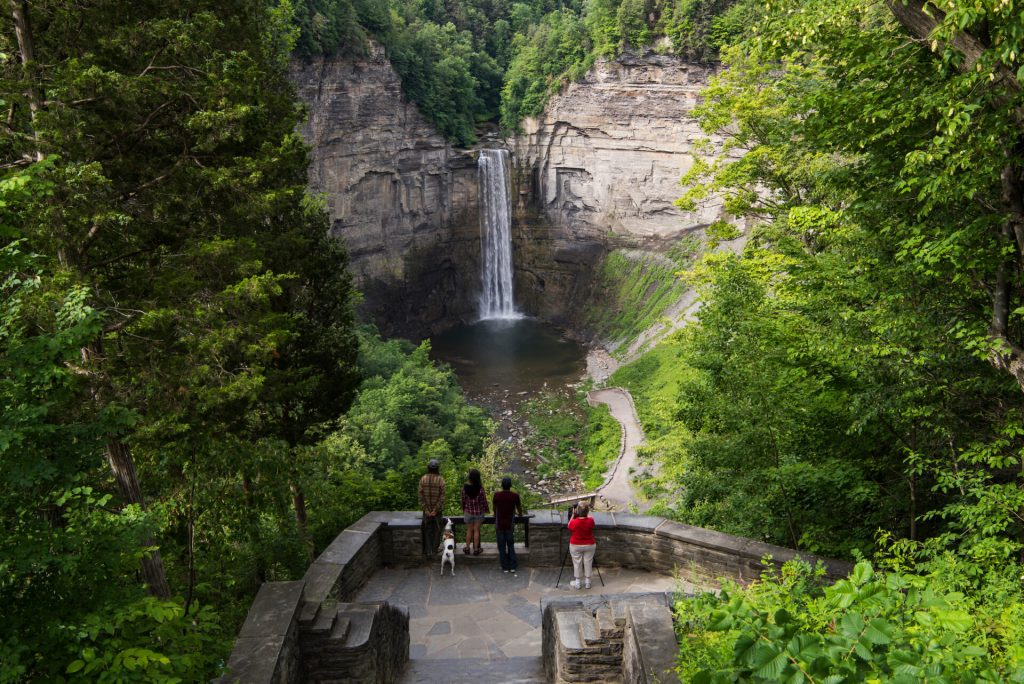 Head east across the open landscapes of Central New York, making a stop in the Finger Lakes region, a stunning area characterised by eleven long, narrow glacial lakes carved into the hillsides. This region is not only an outdoor paradise but also New York’s premier wine-growing destination, renowned for its world-class Rieslings. In addition to its wineries, the Finger Lakes region is home to spectacular waterfalls, including Taughannock Falls, one of the tallest waterfalls east of the Mississippi.