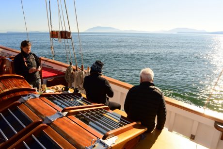 Summertime voyage along central and northern coastlines, featuring whales, marine life, remote beaches, and whale researcher visits.