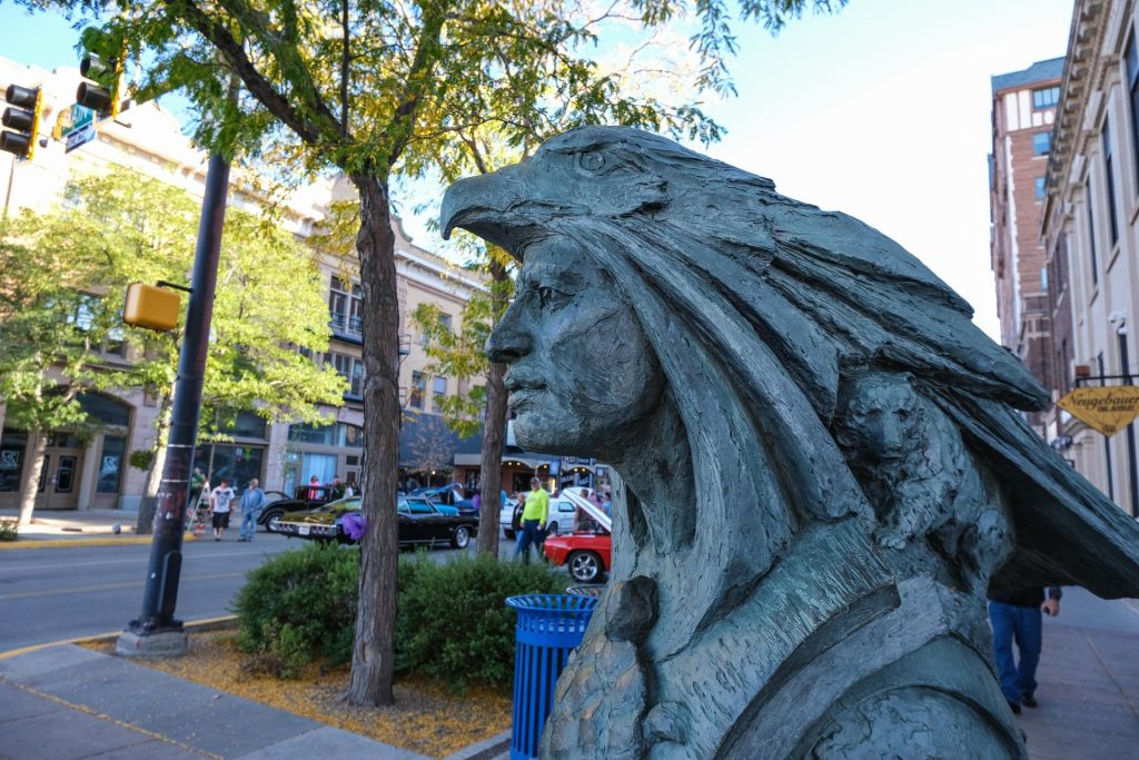 In Chamberlain, don’t miss the Dignity of Earth & Sky sculpture. Towering 50 feet high on a bluff overlooking the Missouri River, this striking work by sculptor Dale Lamphere honours the Native nations of the Great Plains, blending powerful artistry with deep cultural significance.