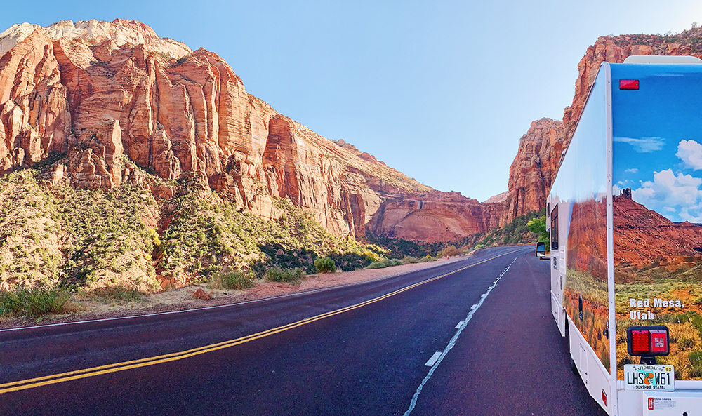 Travel south on Hwy 89 heading for Zion National Park. Zion is different again, more lush, but spectacular too. You will want to stop and linger. Just 14 miles further on, Zion River Resort is ideally located for easy access to what truly is one of the nation’s most beautiful parks so you may want to base yourself here for more than one night. Visit: You must see live musical productions nightly on stage at the Zion canyon Theatre. They offer high energy and great family entertainment.