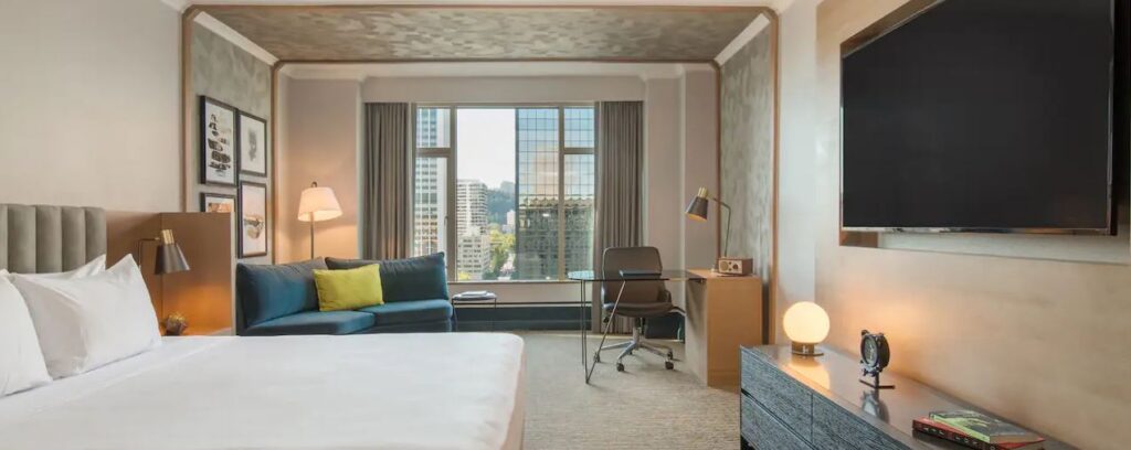 Step into a space exquisitely designed for respite and creativity as well as comfort and quietude. Each room and suite at the hotel is adorned with locally inspired décor that reflects the refreshing natural beauty and dynamic energy of Portland. Guestrooms are appointed with 65-inch flat-screen televisions, complimentary Wi-Fi, Vittoria® coffeemaker, lavish bath products, cosy robes, slippers, and Serenity Beds with 500-thread-count linens.