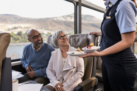 Experience the ultimate in luxury rail travel aboard the Rocky Mountaineer’s GoldLeaf Service from Vancouver to Jasper, a journey that turns the Canadian Rockies into your personal panorama. Relax in your bi-level glass-dome coach, where every seat offers sweeping, unobstructed views of some of the world’s most spectacular landscapes. Savour gourmet cuisine prepared fresh onboard, complemented by premium beverages, as you glide past towering mountains, emerald lakes, and dense forests.
