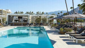The hotel features 168 bungalow‑inspired guestrooms, including 18 suites, all thoughtfully designed with a mid‑century modern aesthetic infused with desert influences. Each room includes private balconies with panoramic views of […]